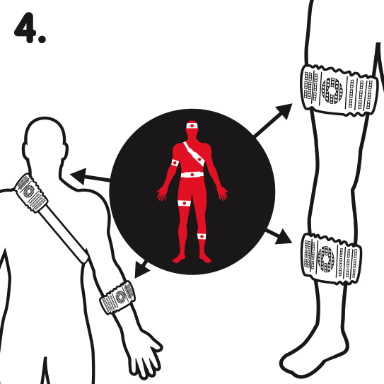 Fix firmly using the hook and loop straps. Tear off surplus strap.
